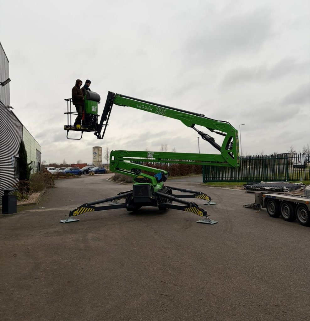 La Leguan Lift 225 offre une hauteur de travail maximale de 22,5 mètres et un déport latéral pouvant atteindre 11,20 mètres, garantissant une grande précision d’intervention et une couverture optimale de la zone de travail.